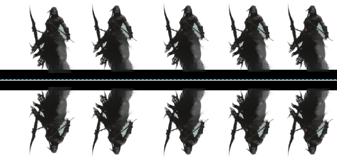 Copy each row of figures into a new layer, select Layer > Transform > Flip Vertically. Then reposition the flipped copy so that it is directly below the original copy with a couple of pixels of white between the black bars. This small gap helps with registration for folding later. Repeat for each row of figures.