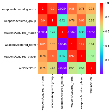 variables = ['killPlace', 'boosts', 'walkDistance', 'weaponsAcquired',